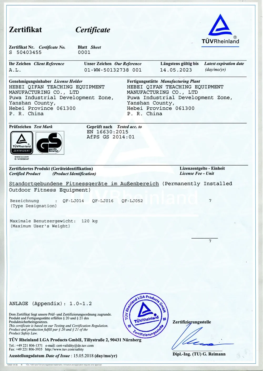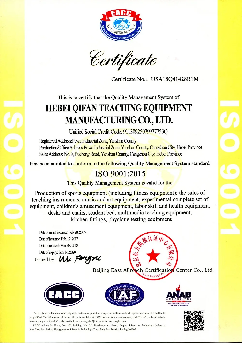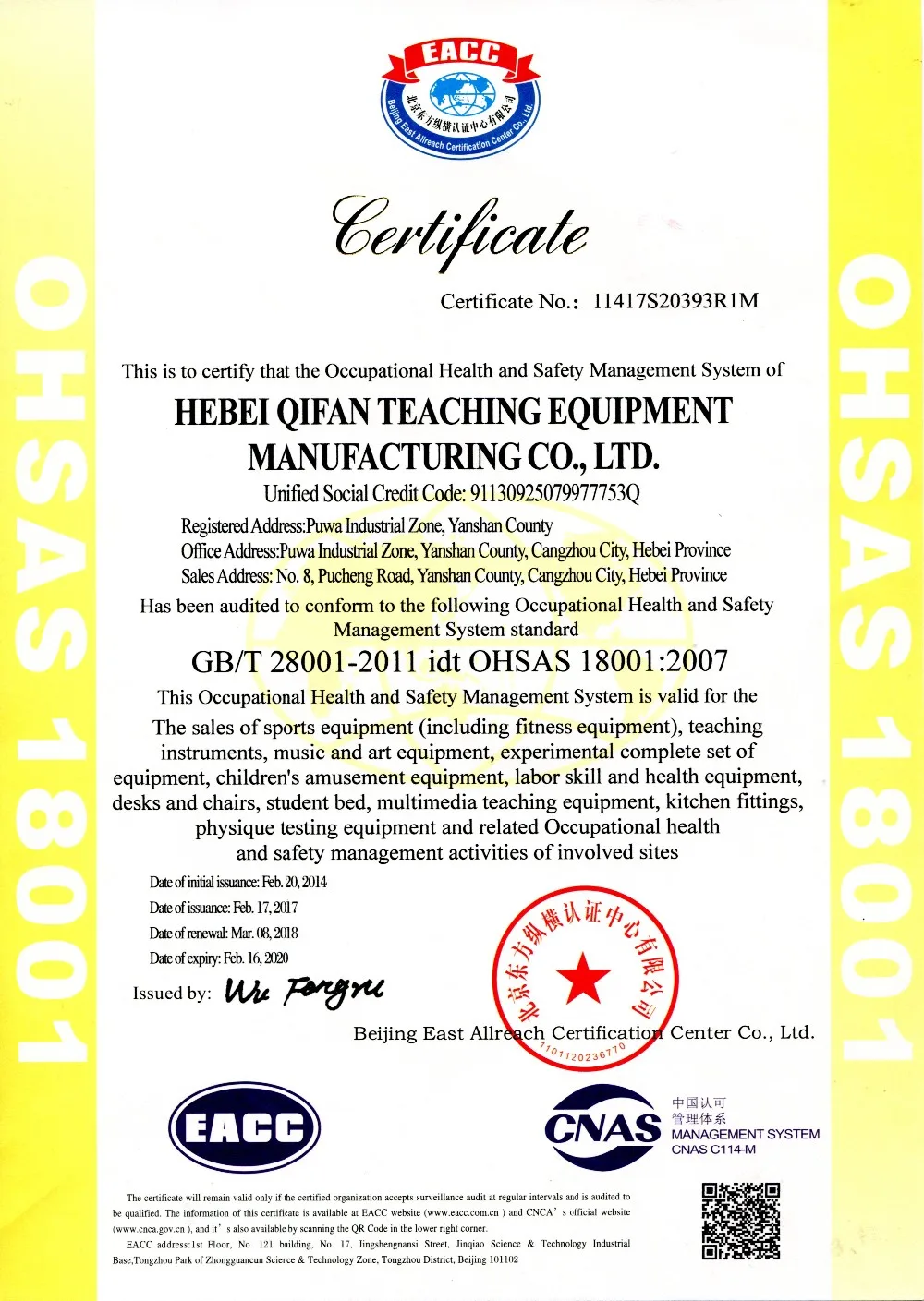 2. With certifications of NSCC, ISO9001, ISO14001, OHSAS 18001 and TUV GS.