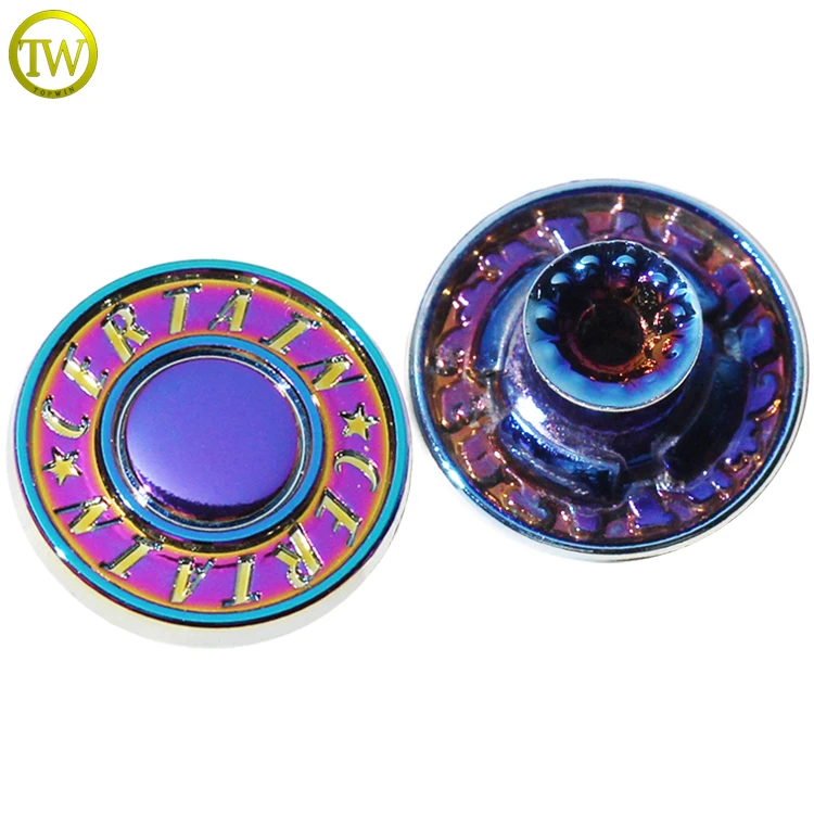 Custom rainbow denim rivet button zinc alloy decorative jeans studs clothing snap buttons for leather shoes
