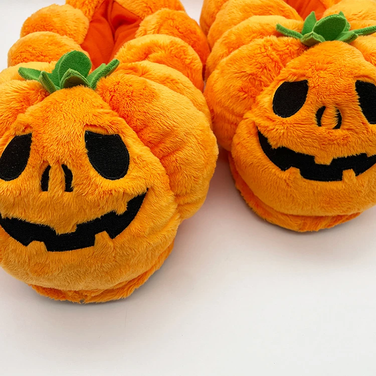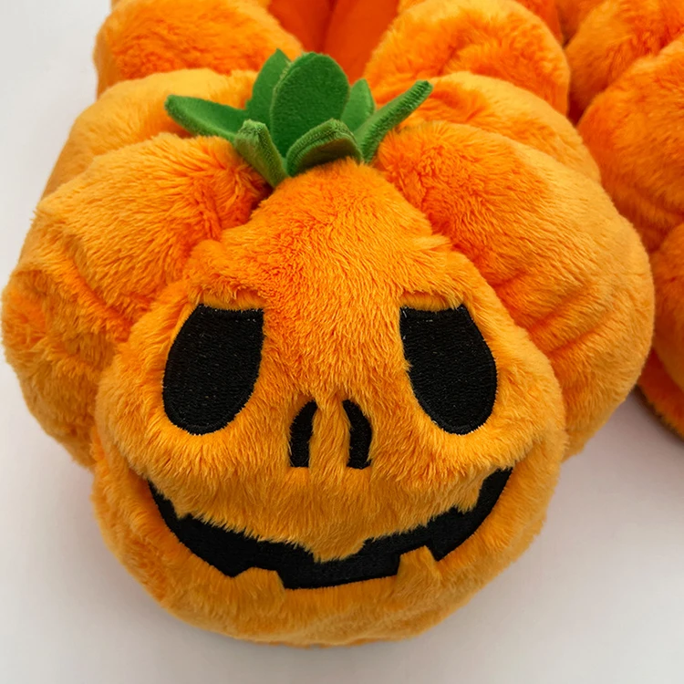 Симпатичные теплые забавные плюшевые новинки один размер зимние унисекс тыквенные тапочки