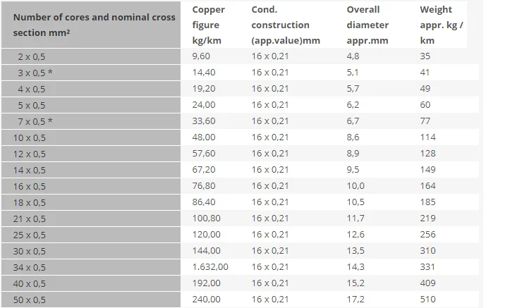 Oil-resistant PVC control cable for a wide range of applications, wide choice of standardized lengths and individual cuts, VDE certificate of conformity with factory surveillance, more than 140 items with up to 100 conductors