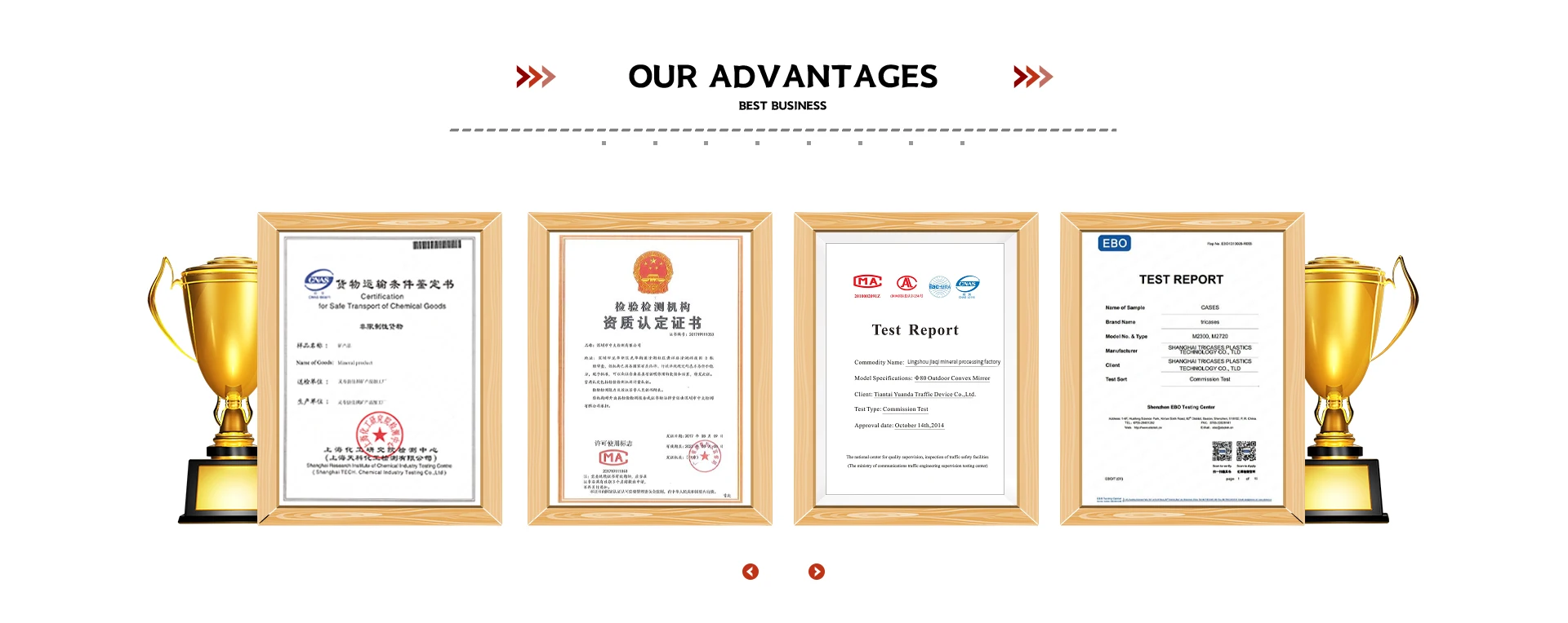 In order to maintain the highest level of quality in our products, our experienced engineers have already built a professional quality control system. Based on the quality control system and professional advanced equipment, we are able to satisfy customers' changing needs effectively by fulfilling their specifications in a positive manner. Moreover, the continuous improvement on quality control system and the enhancement of managerial structure have brought us more opportunities and competitive advantages in both domestic and foreign markets.