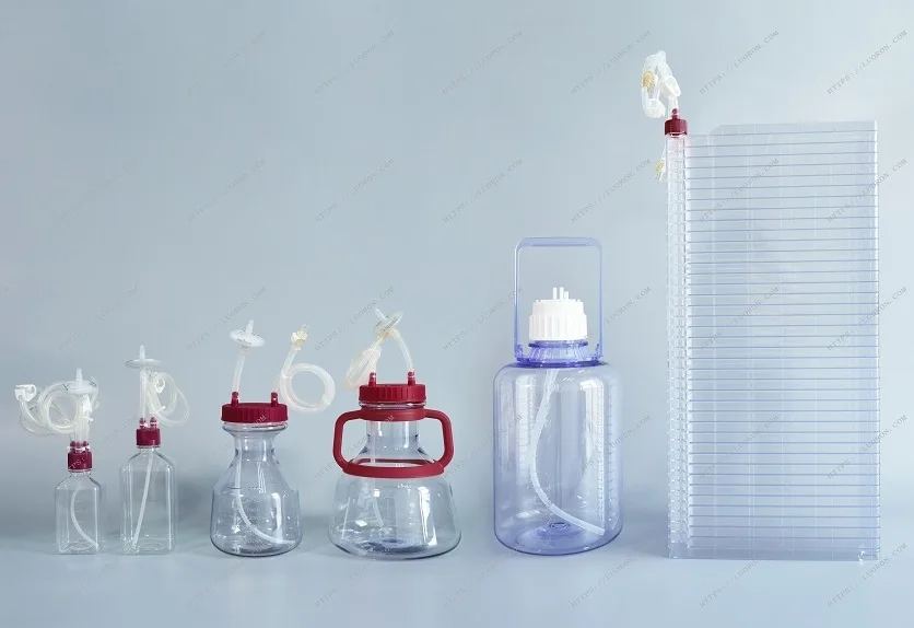 Square media bottle with 2 Ports transfer cap tubing | ||||||||||||||