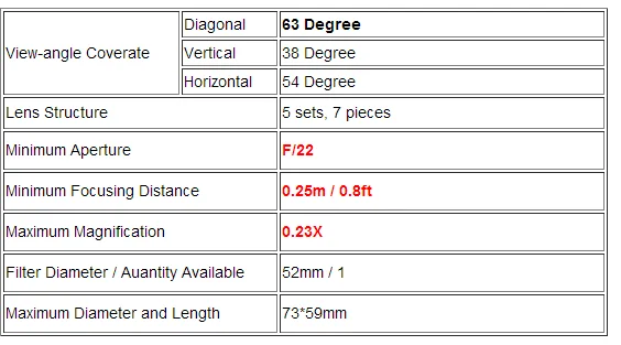 The closest focusing distance up to 0.25 meter,when under close-up shooting,it is available to get the unique sense of depth of the wide-angle lens.