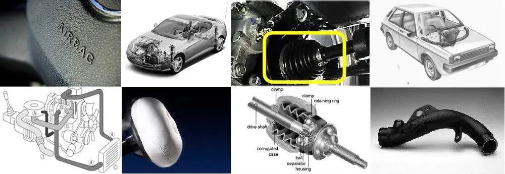 2. Automobile dust covers, mudguards, ventilation pipes, bumpers, corrugated pipes, intake pipes, etc;