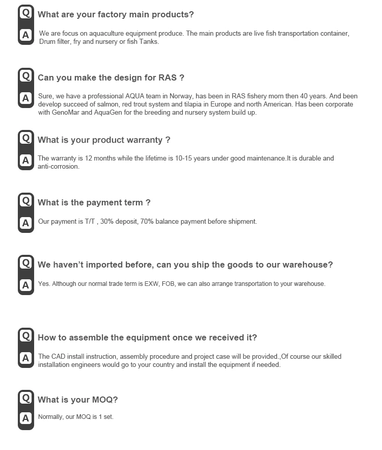 We have been focused in the industry of aquaculture equipment for more than 10 years.