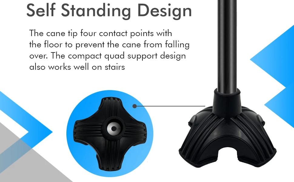 Quad Self Standing Design: self-standing, sugar cane has four contact points, the floor prevents the cane from falling. The compact design is also working on the stairs or limited space.