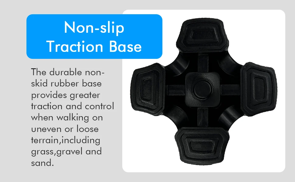 Anti-Slip Traction Base: Durable non-sliding rubber base allows for greater traction, such as grass, gravel or sand during uneven or loose terrain. With the bottom of the steel, the base is reinforced, and the durability is greatly enhanced.