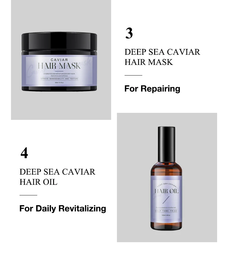 Volume | Deep Sea Caviar Shampoo and Conditioner 500ml Deep Sea Caviar Hair Mask 300ml Deep Sea Caviar Hair Oil 100ml Can Be Customized |