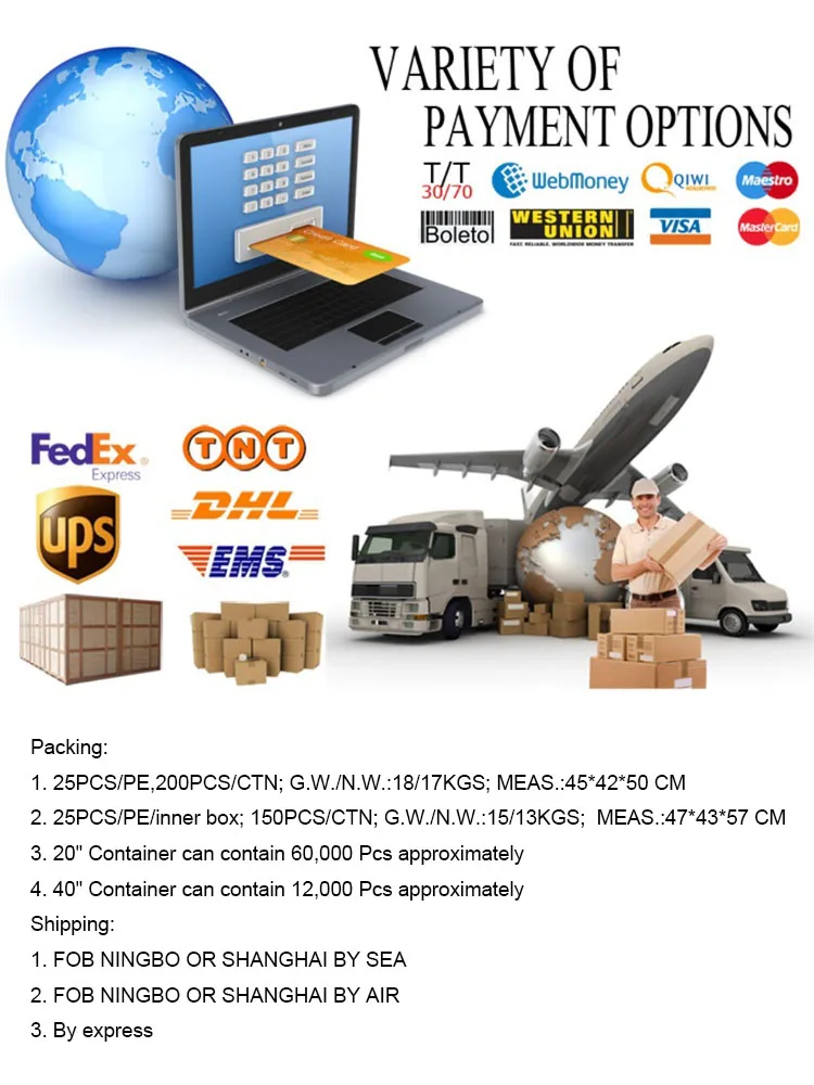 Delivery time | 1.sample leadtimes:4-7days 2.Production leadtime:15-25 days after order confirmed and sample approve | ||
