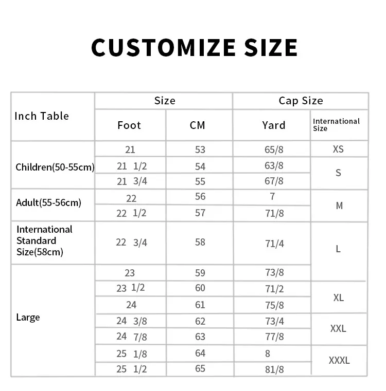 Size | Custom Size | Normally,52cm -56cm for kids,58cm-62cm for adults.All size will available | |