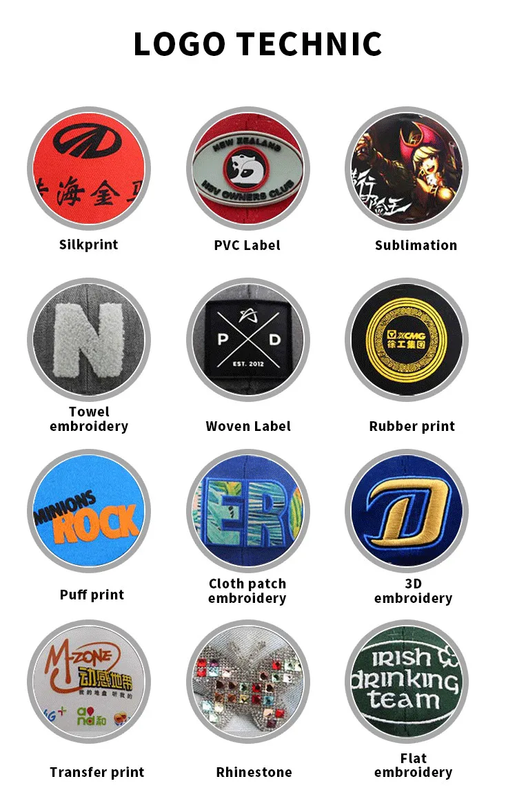 Logo | Embroidery | 2D embroidery,3D embroidery,Metal patch,Printing,Collage embroidery,Towel embroidery,Leather patch,label,etc. | |