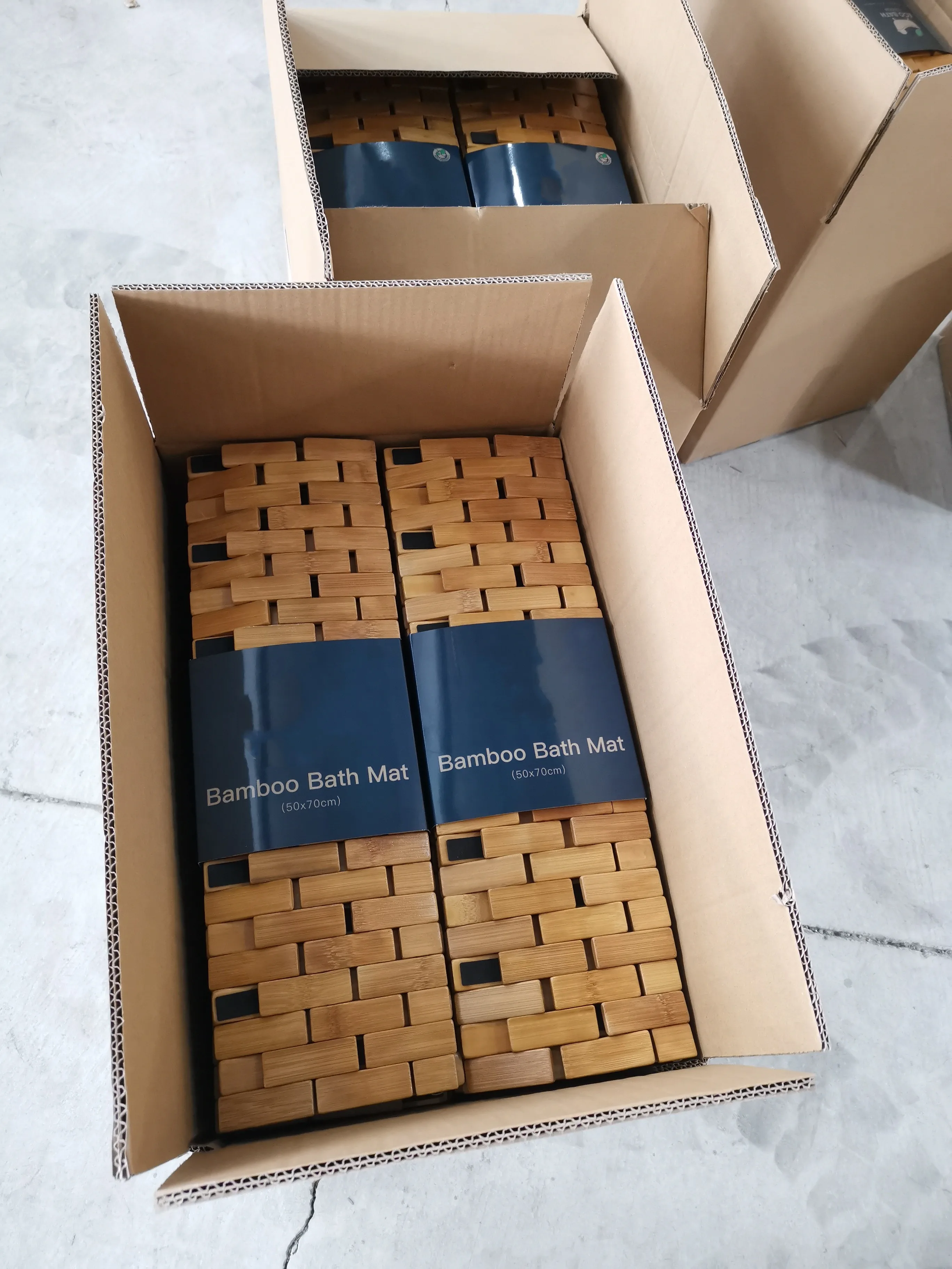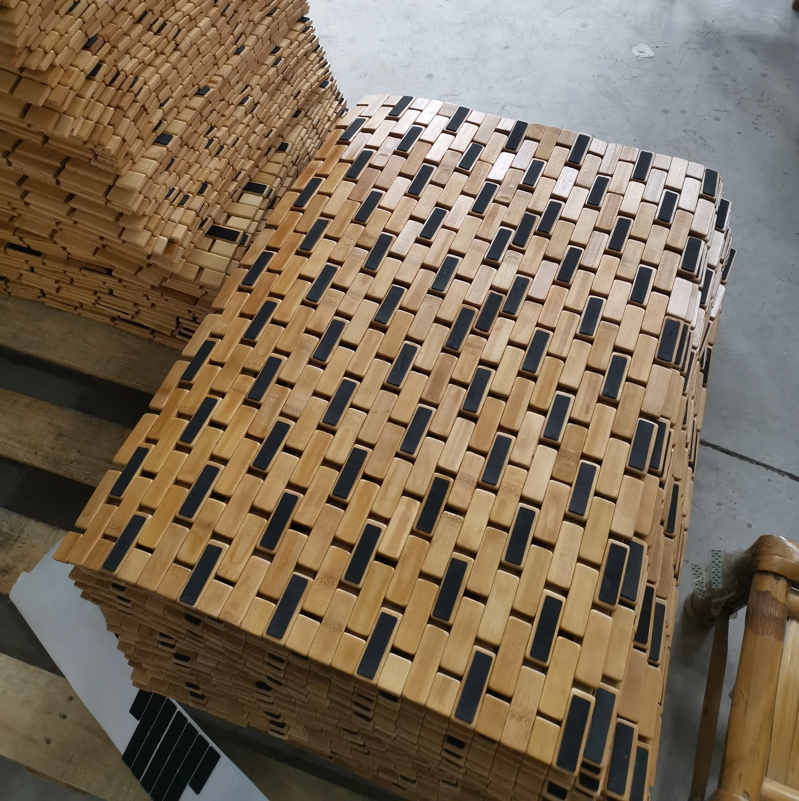 * Bathmat with colorless top coat - Our bamboo bath mats production uses clear coating material that repels water and black stains