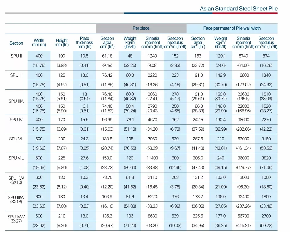 Product name | 400x100x10.5mm Type 2 Hot rolled U type steel sheet pile for construction | ||||