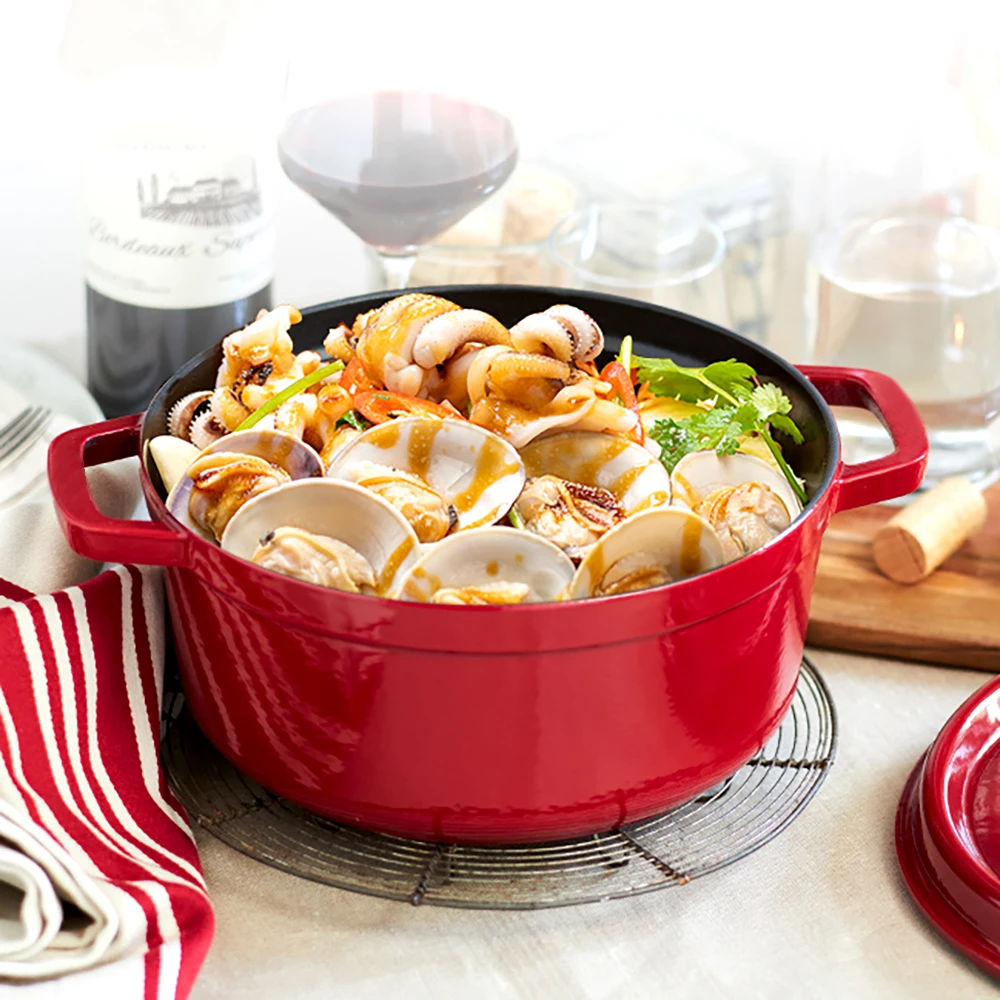 Merit | Made of cast iron and durable.Choose high quality enamel material cast iron cookware can be used on all heat sources including gas, electric solid plate orradiant ring, vitro-ceramic glass, induction, and ovens fired by gas, oil, coal or wood.Rapid heat transfer, uniform heat distribution, saving time and energy |