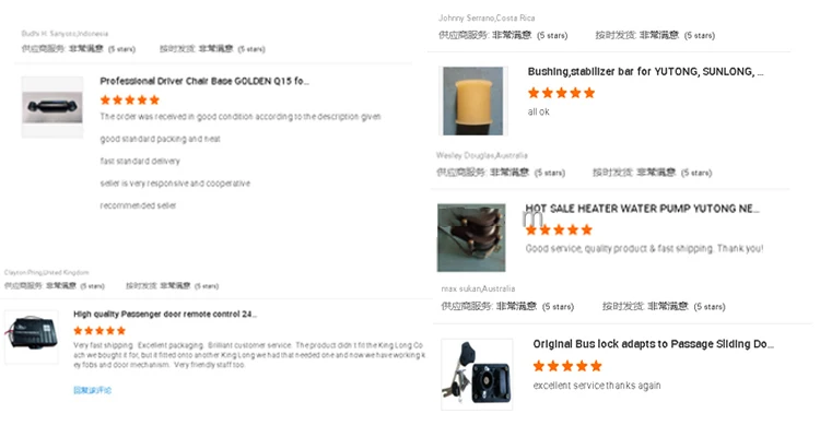 Our products covers all the parts of the bus, including Engine Parts, Gearbox Parts, Chassis Parts, Body Parts, Air-conditioner Parts,Retarder Parts and Electric Parts. Meanwhile, we are satisfying different requirements with Original, OEM, Alternative parts with excellent quality and reasonable pricing level. We can also develop customized products according to customers' needs and bring more value to the customers.