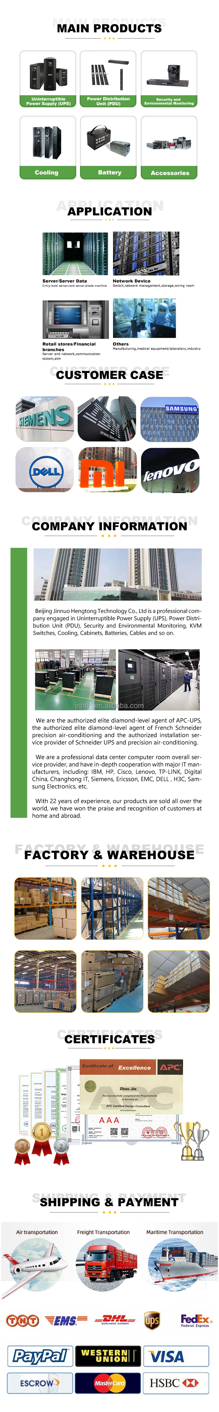 Beijing Jinnuo Hengtong Technology Co., Ltd is a professional company engaged in Uninterruptible Power Supply (UPS), Power Distribution Unit (PDU), Security and Environmental Monitoring, KVM Switches, Cooling, Cabinets, Batteries, Cables and so on.