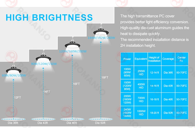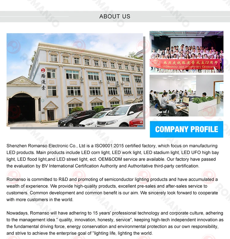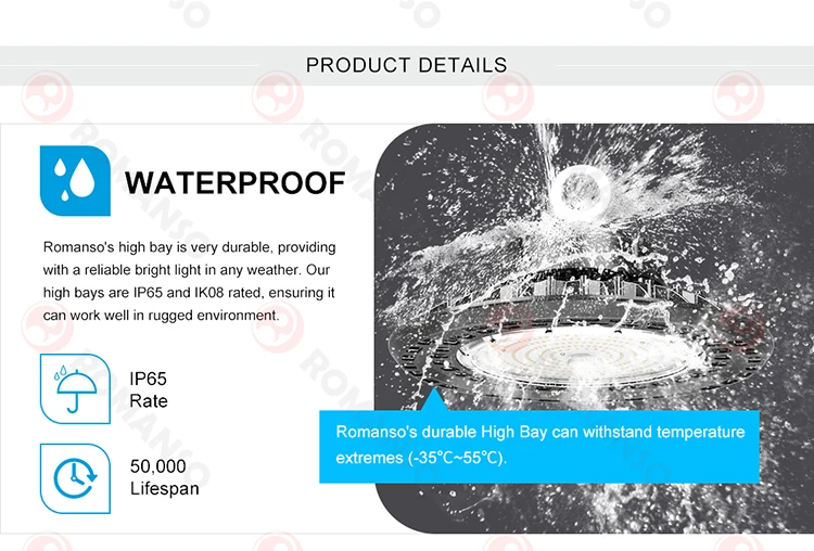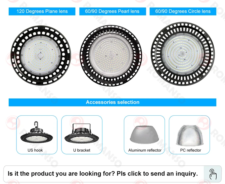 ROMANSO - Experienced supplier in LED lighting industry for 15 years. OEM/ODM service are available, welcome custom sample order. Thanks for your attention on our UFO LED High Bay Light. |
