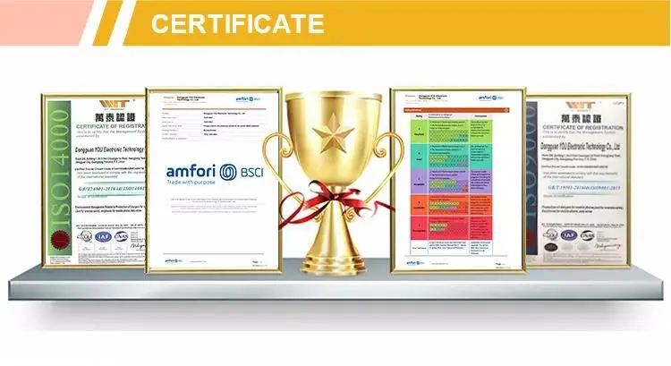 2. European quality, dust-free workshop, in line with ISO 9001,BSCI, ISO 14001 system, etc.All products have passed CE, ROHS, FCC