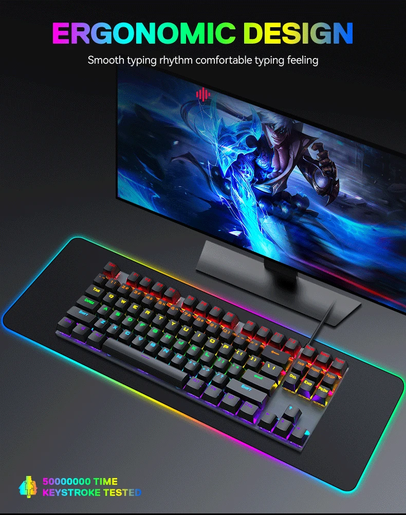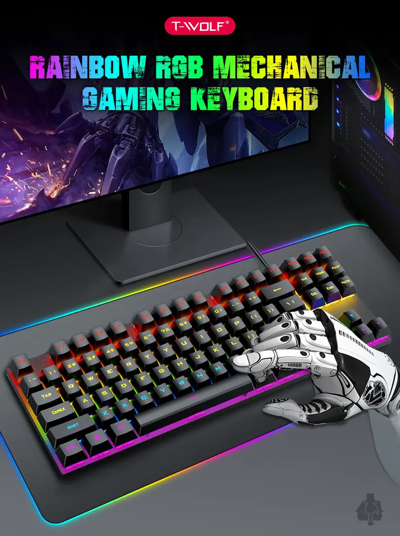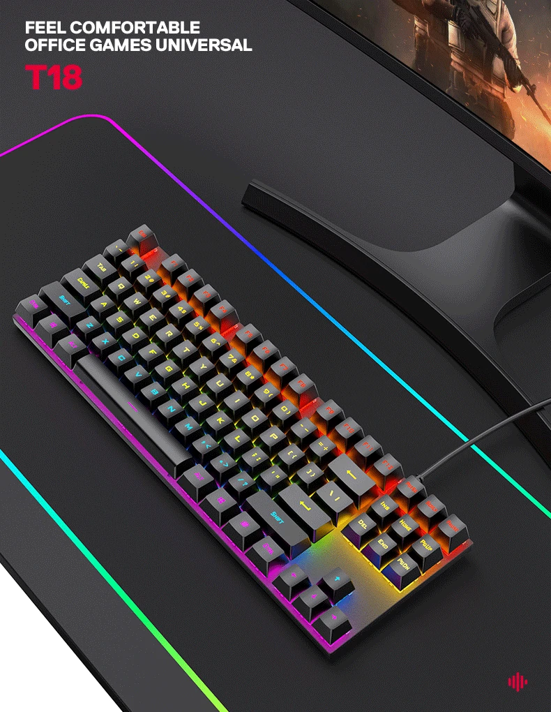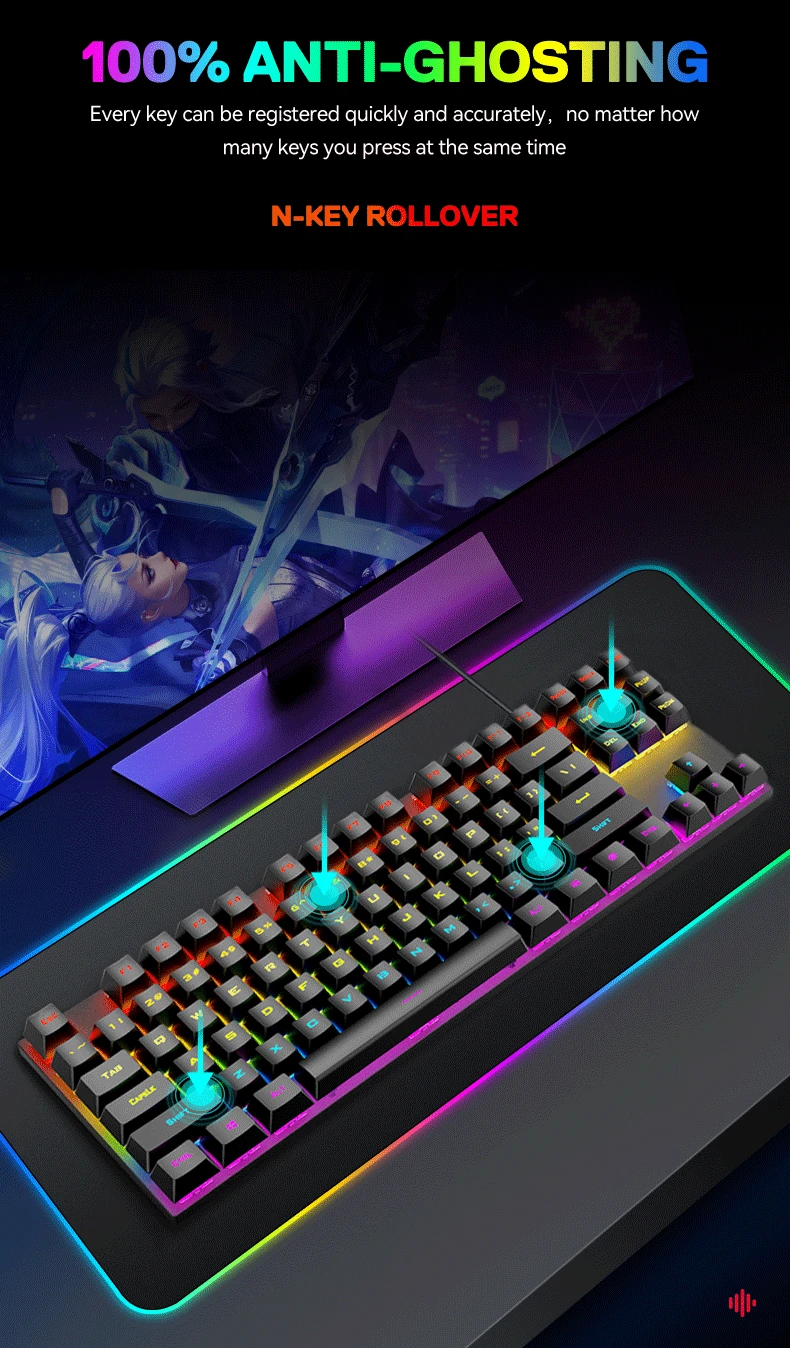 OEM/ODM дешевая USB-клавиатура с проводной подсветкой 87 клавиш RGB игровая механическая клавиатура для ноутбука