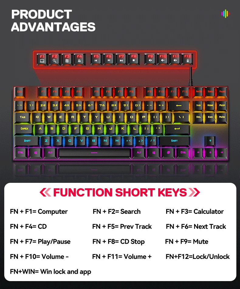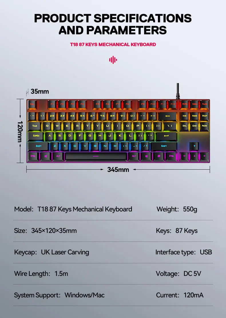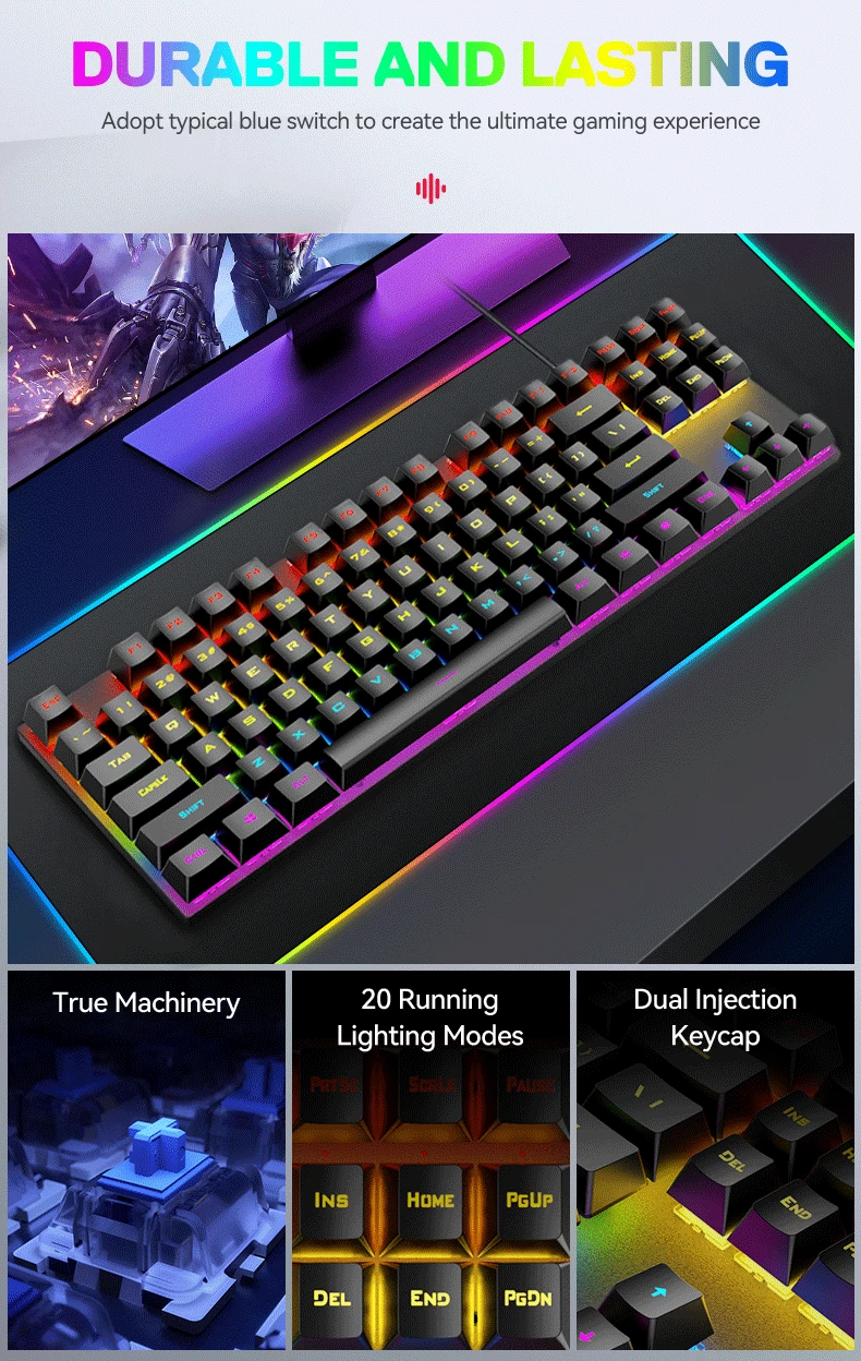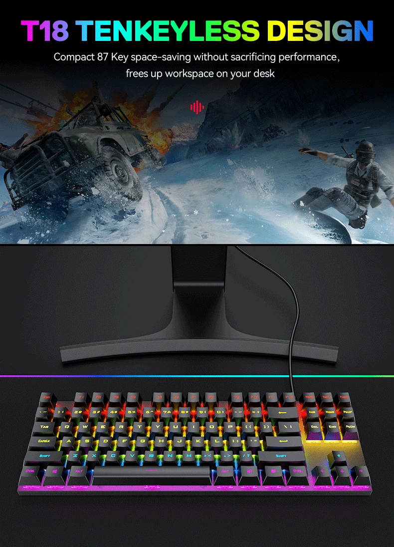 OEM/ODM дешевая USB-клавиатура с проводной подсветкой 87 клавиш RGB игровая механическая клавиатура для ноутбука
