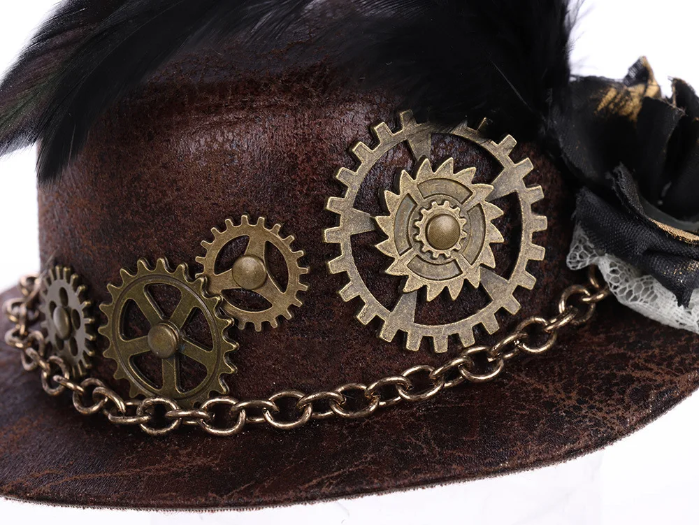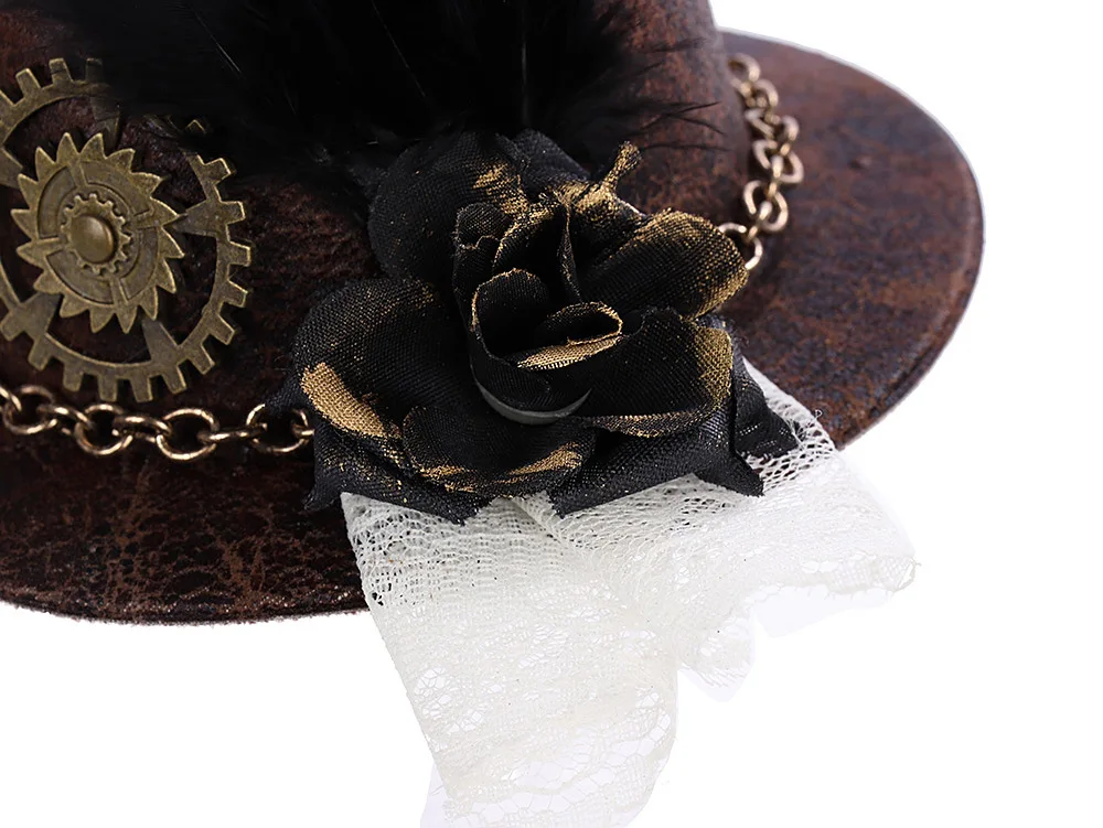 Gothic Mini Top Hat Halloween Chain Feather Flower Fascinator Hair Clip Cosplay Costume Headband