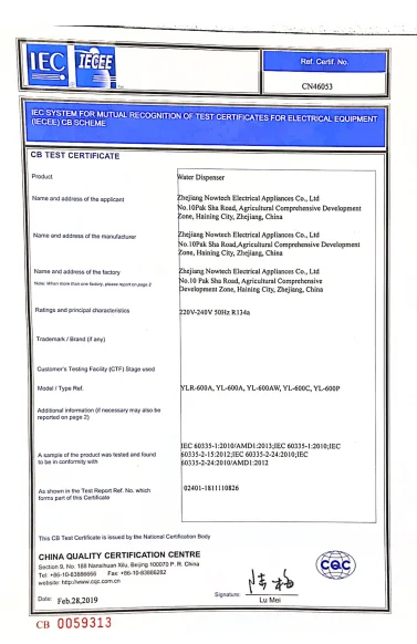 Capacity For cold water | 8-12℃ 20L/H |