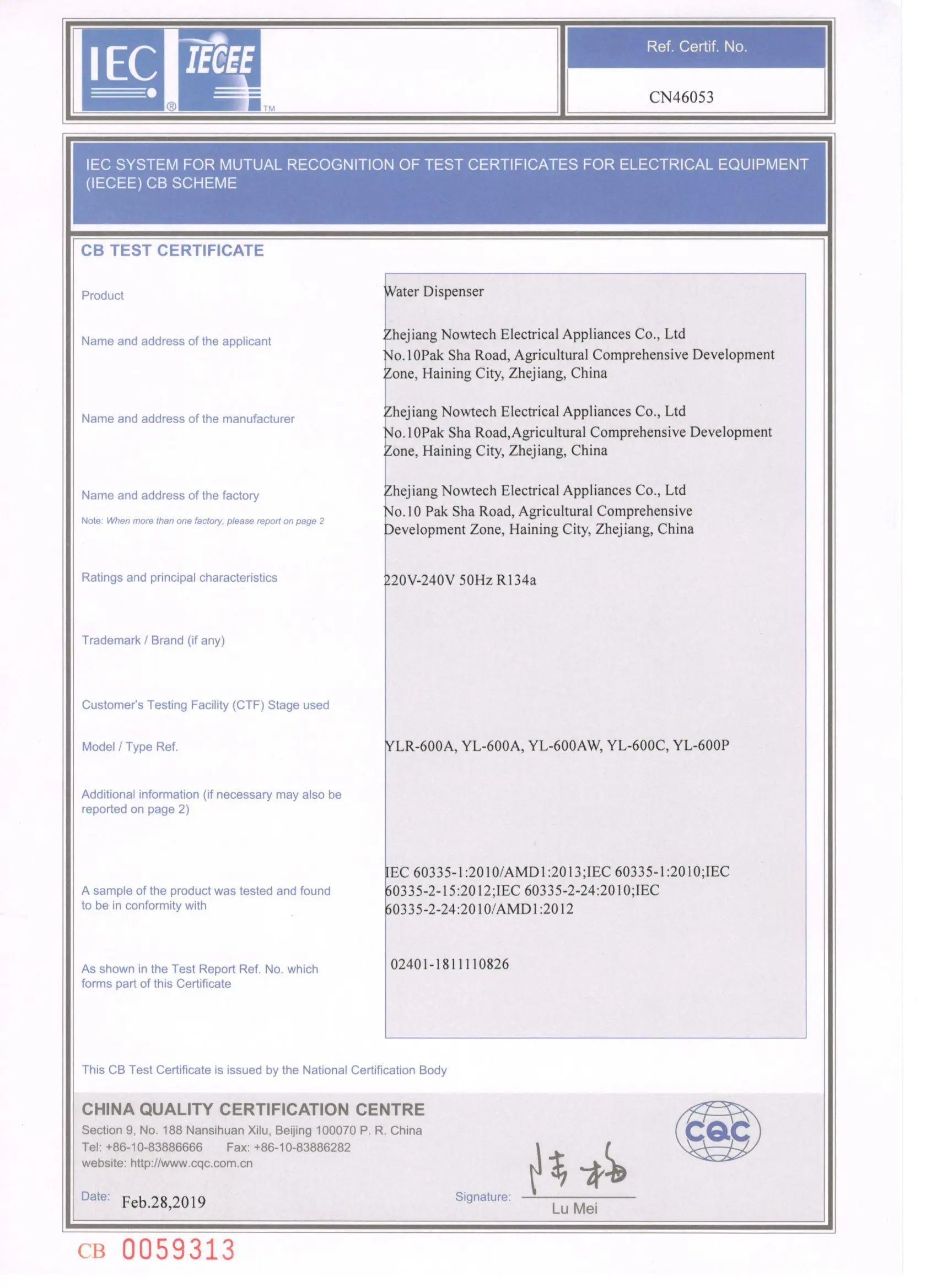 Certification | CE CCC ISO CB ROHS |