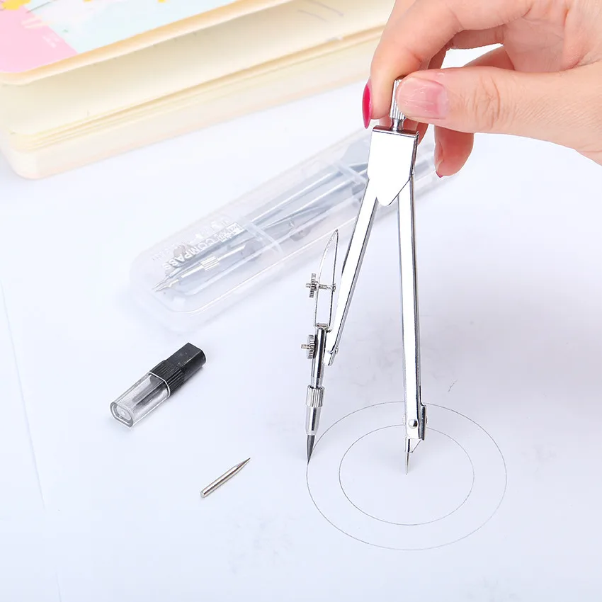 Metal Drawing Compass Set Lead Students Standard Stationery Plotter Comes With Pencil Refills Drawing Instruments