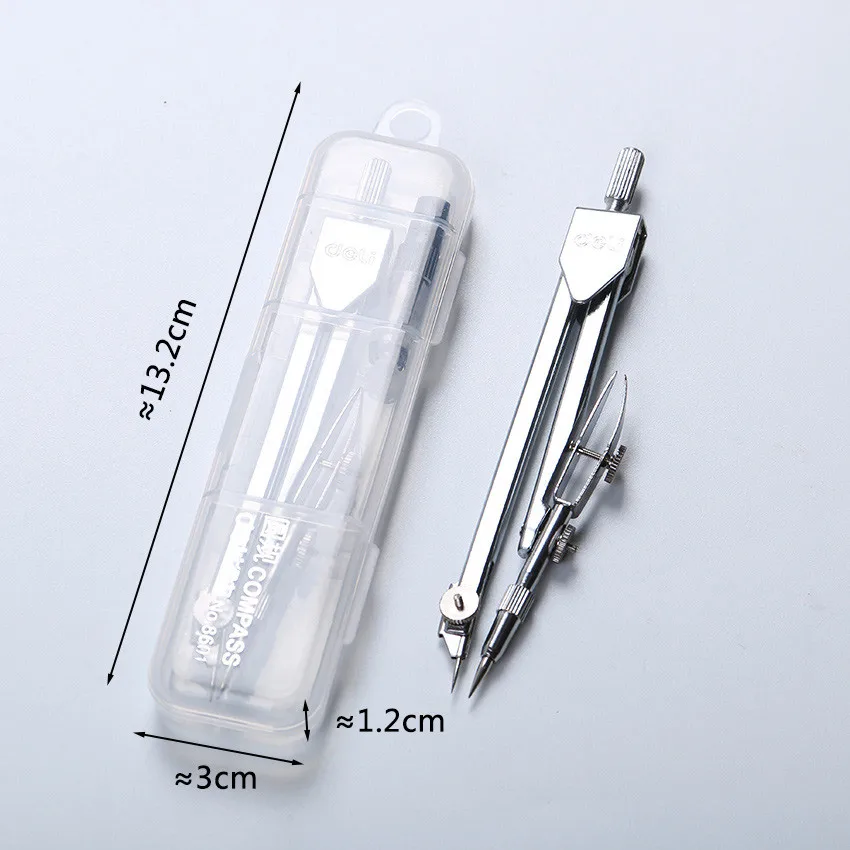 Plastic case for storage and easy carry, Especial suitable for school teaching use. Also comes with pencil lead refills. Introduction: professional drawing compasses, instrument manufacturing standards, drawing precision, using quality materials Material: Metal Size:132mm x 30mm x 12mm Colour:Silver Package includes :1 x drawing compasses |