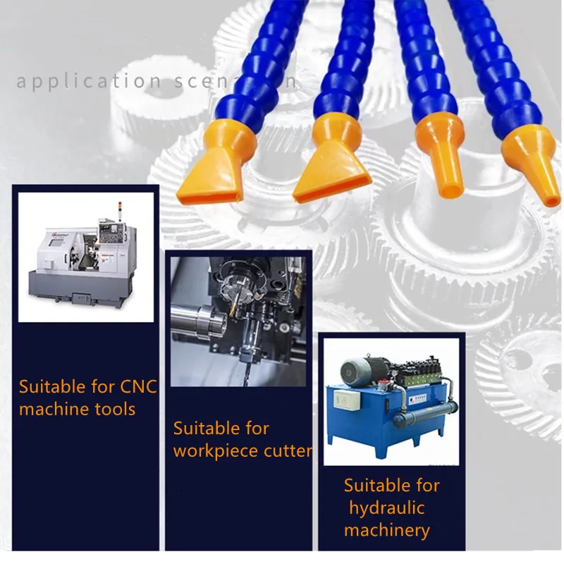 7. Application: Suitable for machine tools, hydraulic machinery, CNC machine tools as oil and water cooling system Through manual assembly, the product can be adjusted arbitrarily to use length, nozzle diameter size round flat interchange.