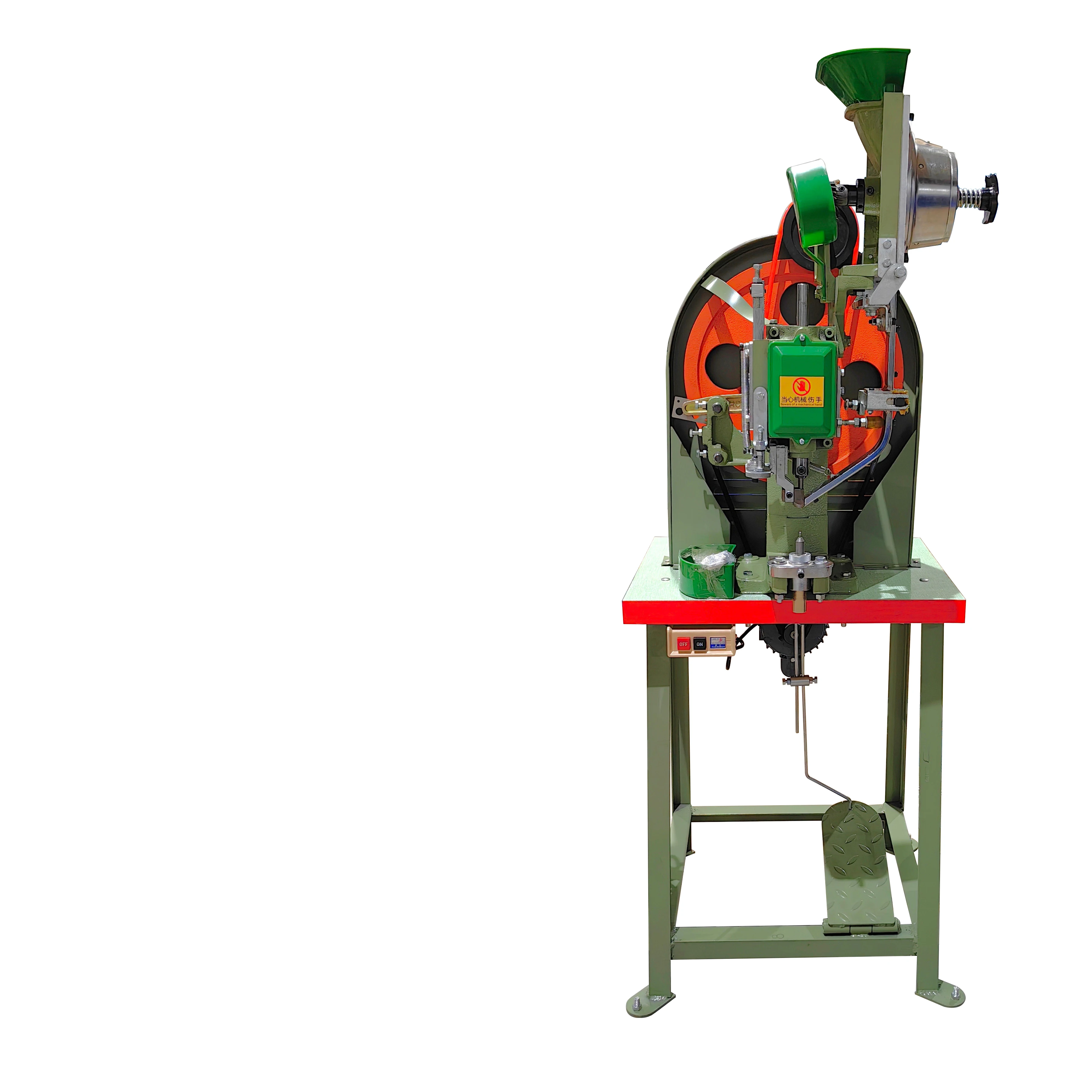 It is suitable for riveting all kinds of hardware products, such as four-button, cowboy button, I-button, five-claw button, hoodbutton, stitching button, bump nail, hollow nail, corns, aluminum nail and so on.