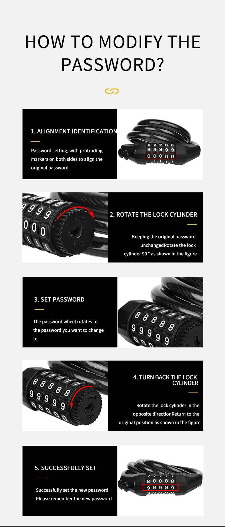 Xunting 65/90/110/145 см 5-разрядный комбинации цепи блокировки инструмент для демонтажа велосипеда Аксессуары цепочный замок мотоцикла 1,64-1,88 $