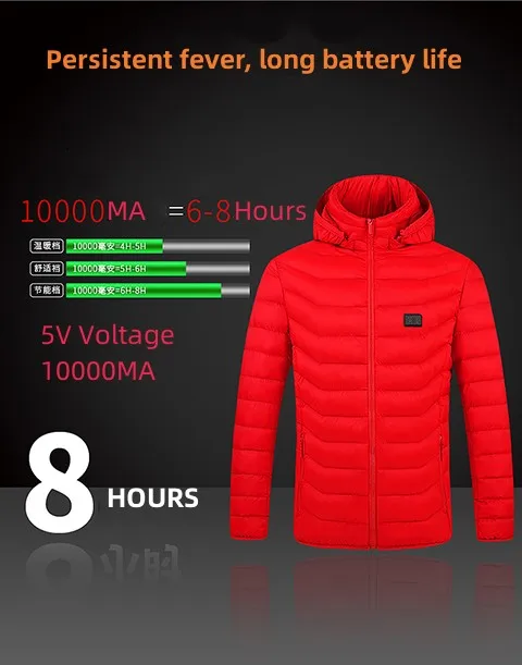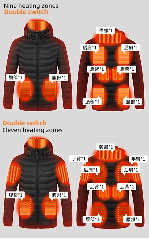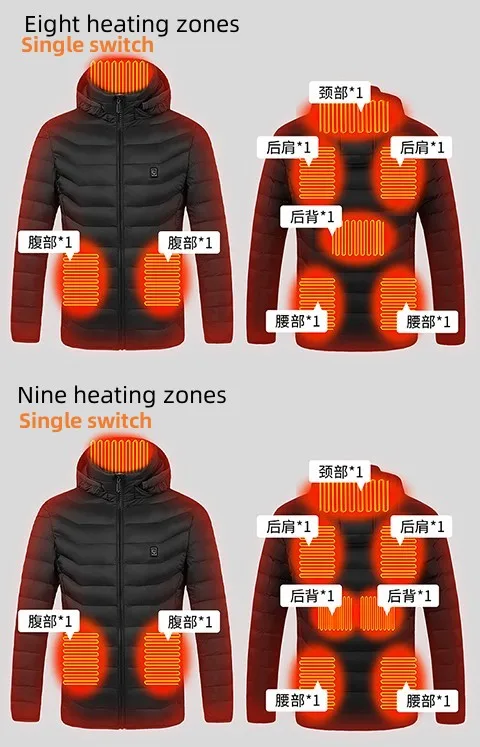 Description: | Mens USB Charger Double Switch Heating Padded Puffer Hoodies Jacket |