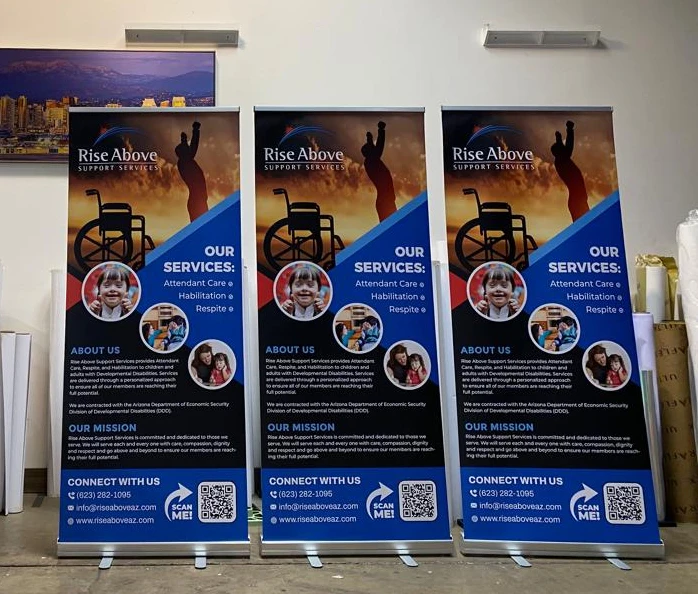 Feature | 1. High Resolution Full Color Printing 2. Durable Roll up Stand 3. Portable, Retractable, Convenient to Pack and Carry 4. Glossy or Matte Cold Lamination Film protection Surface 5. Widely used on tradeshow, exhibition, display, promotion, advertising etc. |