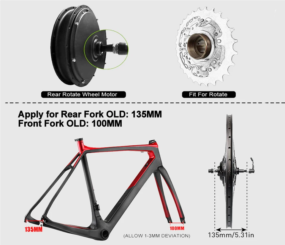 Re: The rear hub motor fits the bike with a rear drop outsize "of 135mm", The front hub motor fits the bike with a front drop