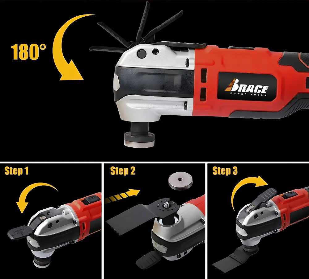 Features | 1. High-Efficiency & Powerful: The brushless oscillating tool features a 3° oscillating angle for superior cutting performance. 2.With 6 variable speed control settings ranging from 5,000 to 21,000 RPM, you can easily match the optimal speed for a wide range of tasks, like trimming, sanding, scraping, and cutting. 3. Lightweight & One Hand Operation: Our oscillating saw is lightweight,weighing only 1.87 pounds (without battery) 4. Built-in LED Lighting: The cordless oscillating tool comes with built-in LED lighting, providing ample illumination for your work-piece, ideal for use in poorly lit areas and confined spaces, ensuring that you can work with precision and accuracy |