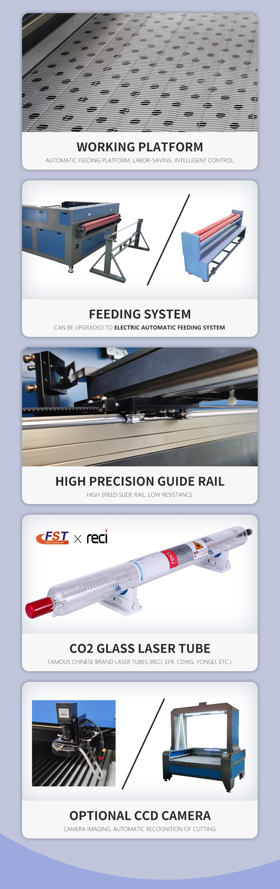 Laser power | 80W/100W/130W/150W/160W/180W/300W (Optional) | |