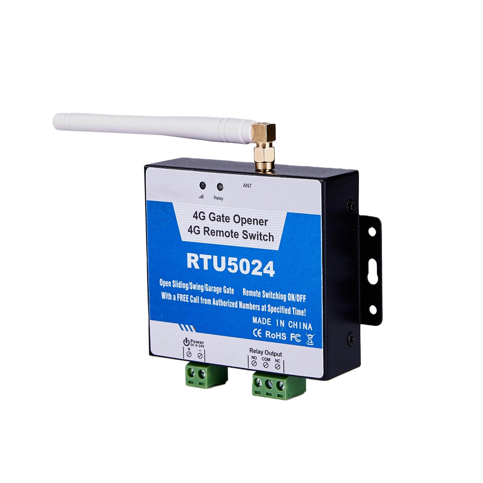 The 4GLTE Gate Opener is a very simple device which can be used for authorized door access, controlling gates, switching of remote equipments, car parking systems. Actually the 4GLTE Gate Opener can be used in places which require turning ON/OFF your system, machines, equipments remotely with a FREE call from your mobile phone and protect your assets. Just dial from Authorized User number then the Barrier and doors are opened, or the machine are turn on or off by the 4GLTE Gate Opener. There are no call costs, the 4GLTE Gate Opener rejects the call from authorized number then carries out the turn ON/OFF action. Moreover, the device with 2 digital inputs for digital inputs, when any one of the inputs triggered, will start the siren or switch on the light, in the meanwhile, the device will send SMS Alert the to owners immediately. This is very useful if you need protect your assets with low cost solution.