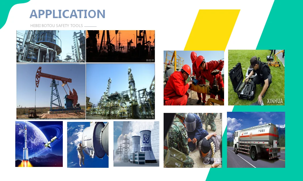 The products are widely used in inflammable and explosive places such as petroleum, chemical industry, oil refining, oil extraction, gas production, oil and gas pipelines, mines, military industry, nuclear power, aviation, pharmacy, anti-terrorism,mine clearance and explosive ordnance disposal.