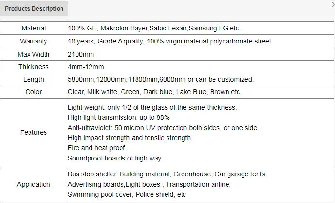 Sheet | Polycarbonate solid sheet |
