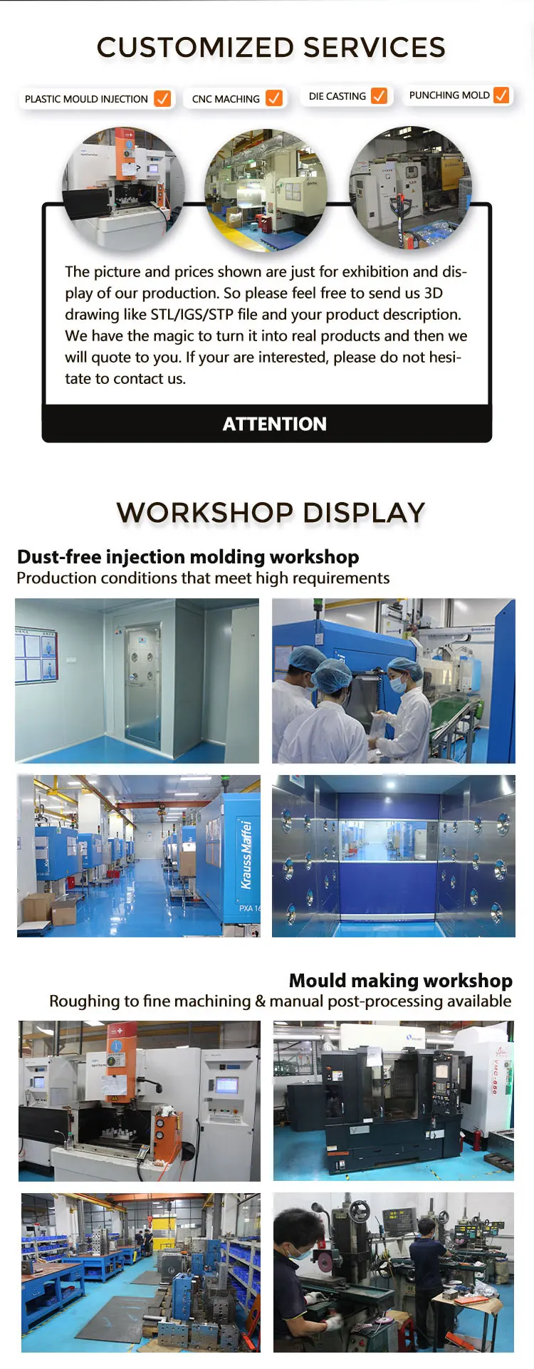 Mould material | NAK80, S136, 2316, 2738, H13, 5CrNiMo, 718H, P20, 40Cr, 60#, 45# etc | ||||||||