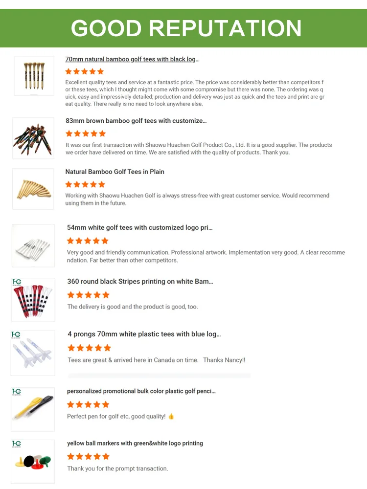 Shaowu Huachen Golf Product Co., Ltd., was established in 2009.. As a professional manufacturer, we are dedicated to producing golf tees and other golf accessories to the worldwide market. Depending on superior quality, prompt delivery and competitive price, our products enjoy an excellent reputation in worldwide market.