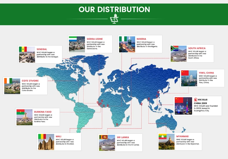 Our trademark“WHC SOLAR”has registered in 37 countries around the world. And we own 11 invention patents, providing customers with original market protection. We often attend solar energy industry exhibitions in German, USA, South Africa, Nigeria, Philippines, etc.