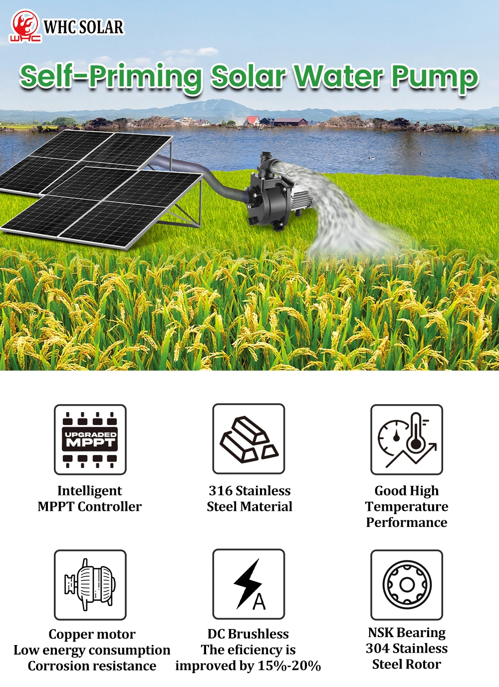 Guangzhou WHC Solar Technology Co.,Ltd was founded in 2009, which is a professional manufacturer specializing in the solar field for more than 15 years, including solar batteries, solar inverters, solar panels, solar controllers, solar street lights and solar water pump etc.