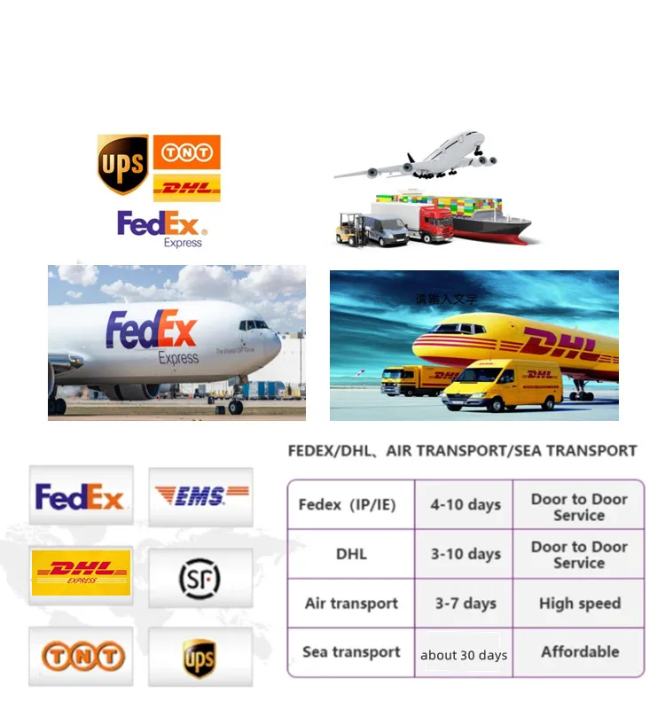 a.Shipping Methods: DHL/FedEx/Air Shipping/Sea Shipping. Shipping Time: 4-8 days by air or 20-30 days by sea