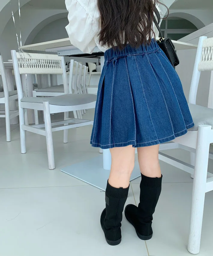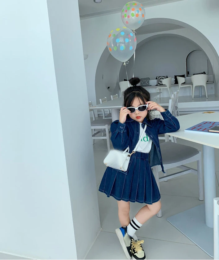 Product Name | Conyson 2023 Autumn Spring New Design Boutique The New Soft Girls' Denim Suit Lapel Shirt And Pleated Skirt Two Piece Girl's Set |