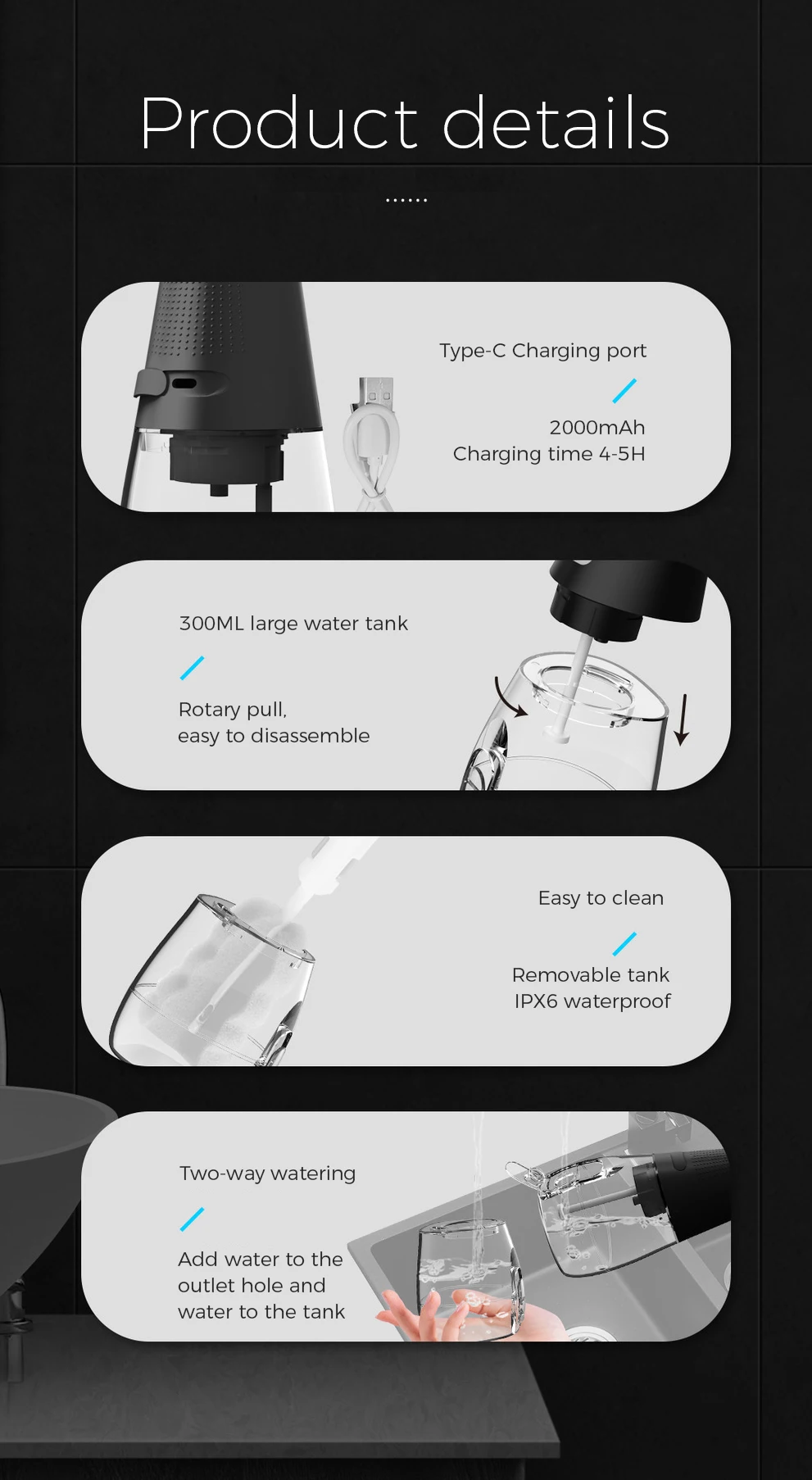 Portable Rechargeable Water Pick Teeth Cleaner 3 Modes Oral Teeth Pick Dental Irrigator Powerful Cordless Water Flosser