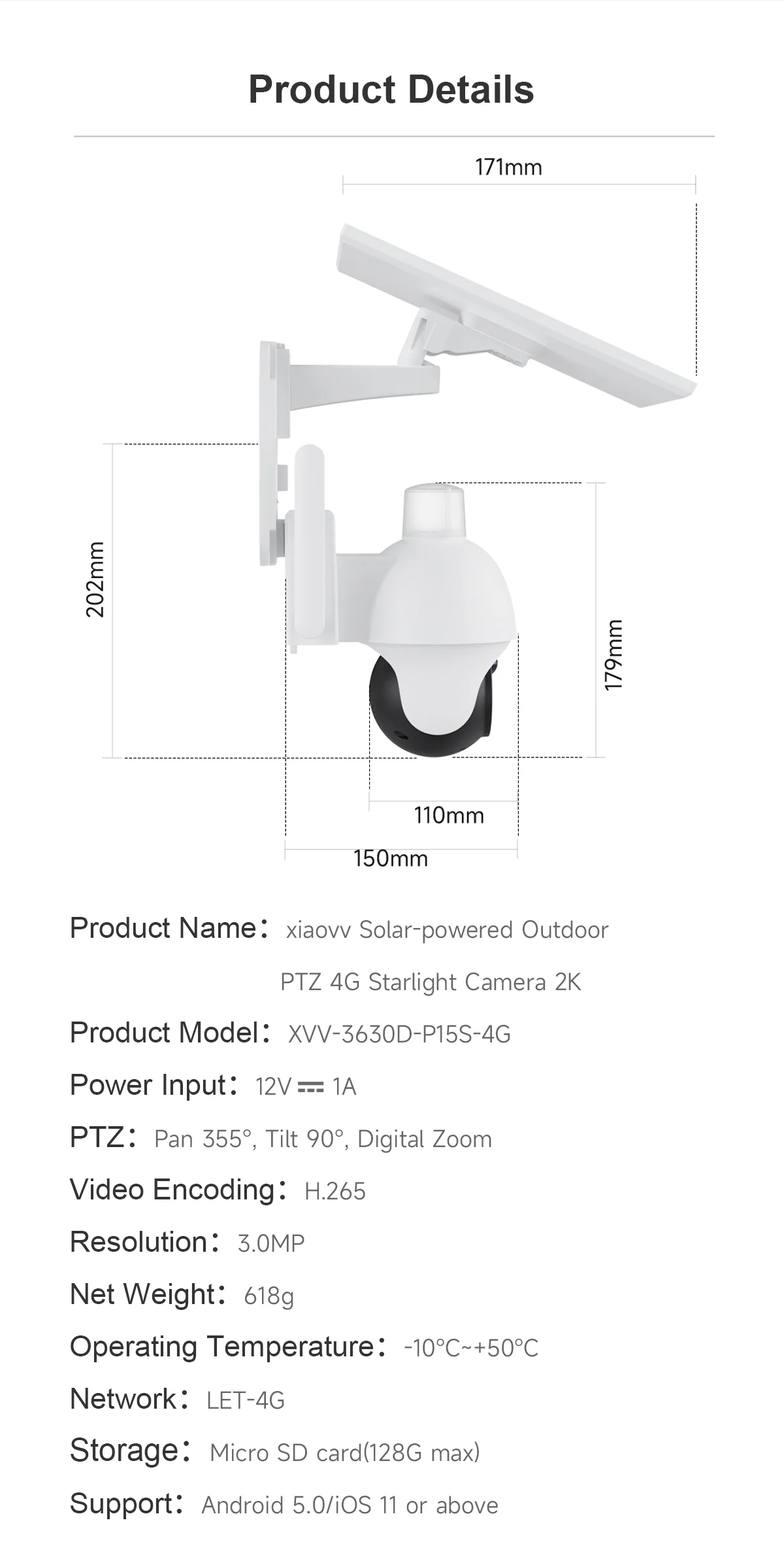Product Name | xiaovv P15S Starlight Night Vision Solar Camera | ||||||