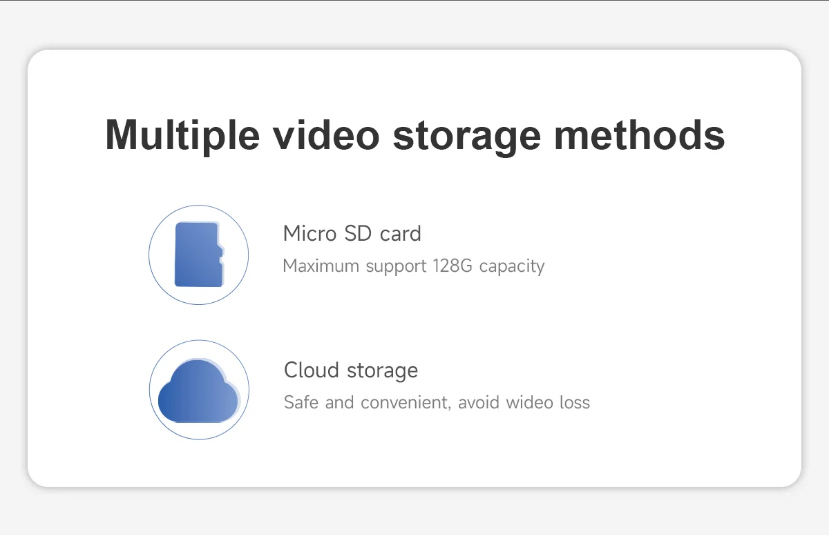 Storage | Micro SD card (128G) local storage video/Cloud service | ||||||