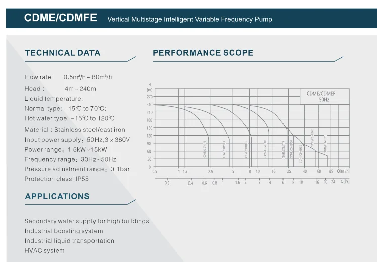 CDM/CDMF pumps are new generation, high efficiency, non-self-priming vertical multistage centrifugal pumps (Abbr. as Pumps).